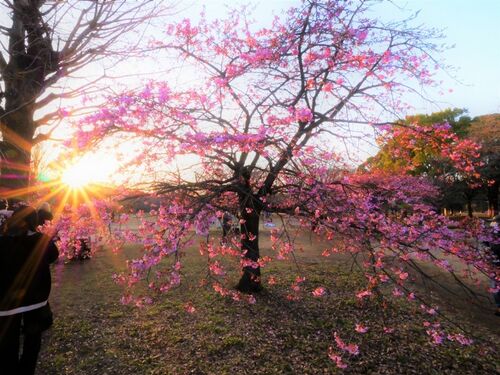 みなさーん 夕暮れは 展望台ね (✿◡‿◡) 公園も φ(゜▽゜*)♪ お題「わたしの癒やし」 桜が夕日でキラキラに 河津桜 代々木公園 2023年2月 夕日でライトアップされて幻想的に 河津桜 代々木公園 2023年2月 夕暮れ時、ここだけは別世界 中央広場東 代々木公園 202…