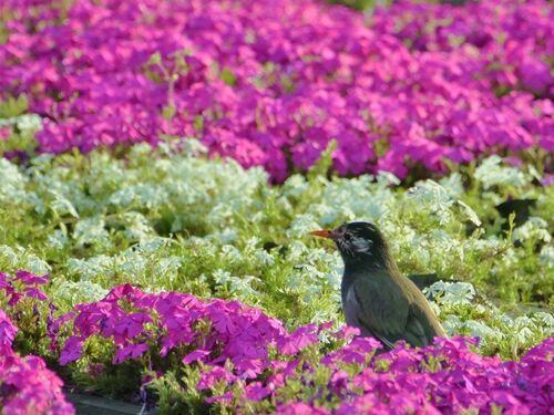 みなさーん 散歩日和 公園ね ( ̄︶ ̄)↗ 河川敷がいい φ(゜▽゜*)♪ お題「気分転換」 小鳥さんたちが楽しそう 新荒川大橋緑地 2023年4月中旬 『KITA・CITY』の巨大なフラワーアート 新荒川大橋緑地 2023年4月中旬約64,000株の芝桜という。(植栽面積7,444平…