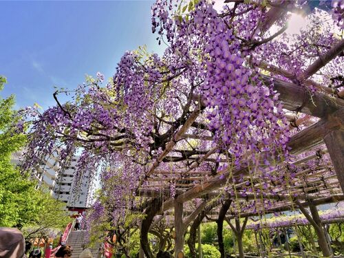 みなさーん 藤棚って そろそろね ( •̀ ω •́ )✧ 藤まつり φ(゜▽゜*)♪ お題「わたしの癒やし」 優しい日差しとさわやかな香りの中で 亀戸天神社 2023年4月中旬 藤まつり開催中 亀戸天神社 2023年4月中旬4月15日~5月5日開催!江東区・亀戸天神社の「藤まつり」…