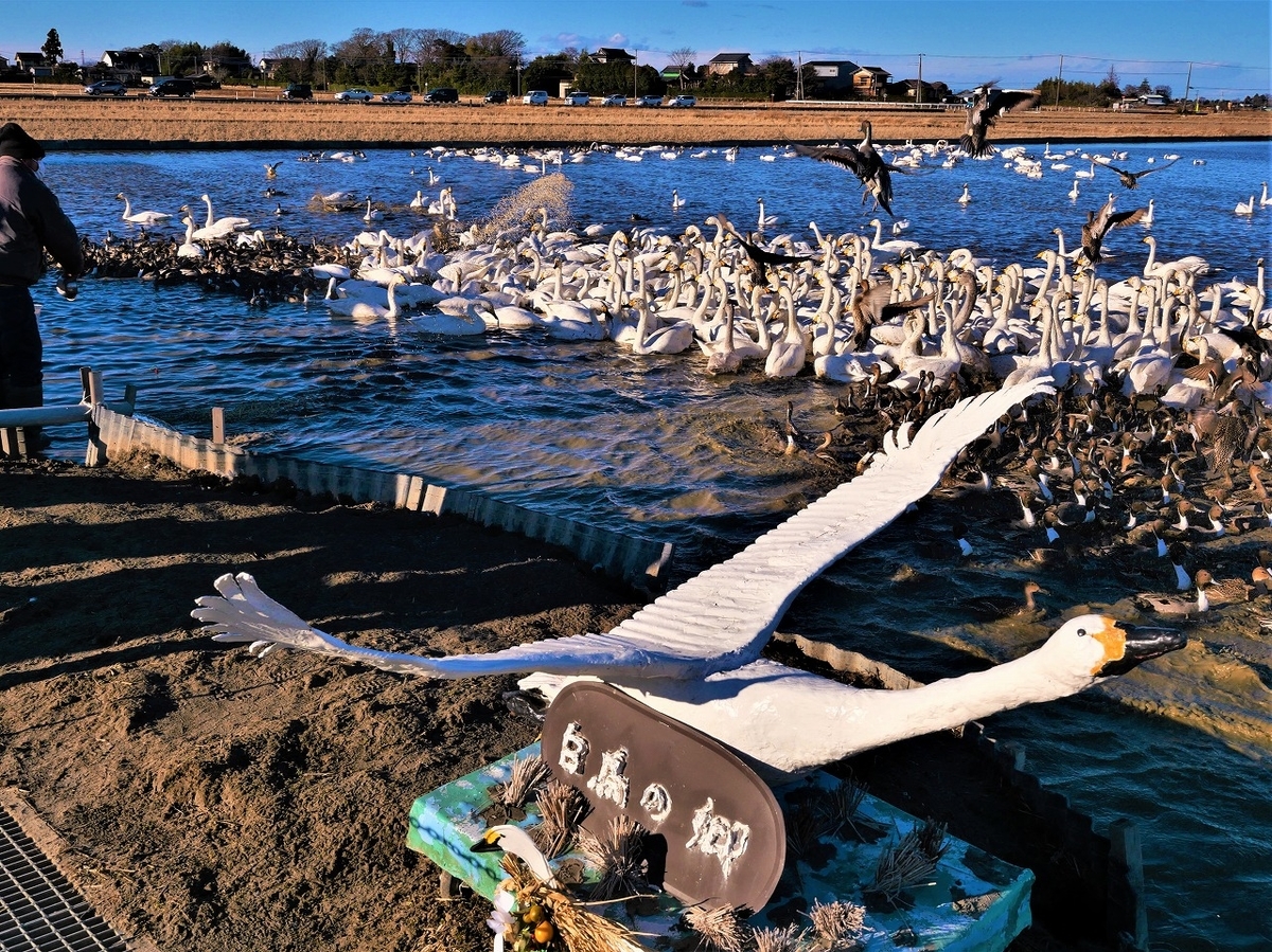 国内有数の白鳥の飛来地である「本埜(もとの)白鳥の郷」、、、800羽を超えたという白鳥にカモたちも加わり大変な賑わいだった。