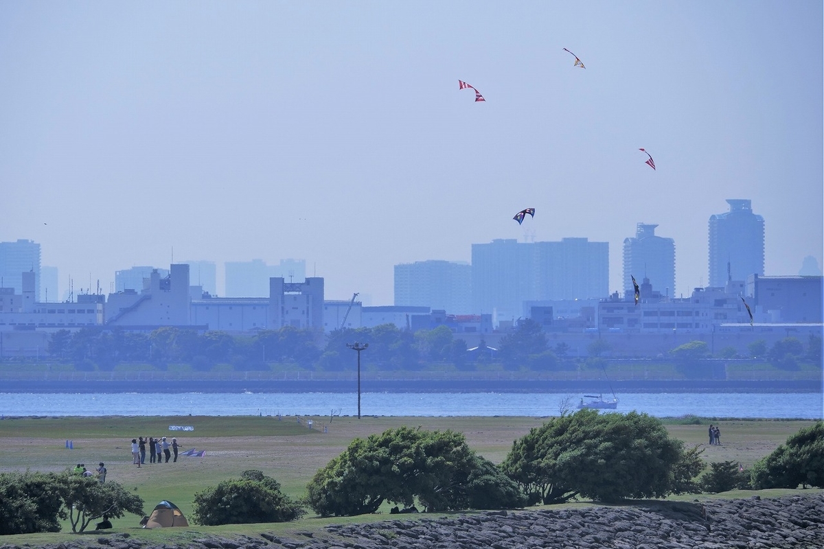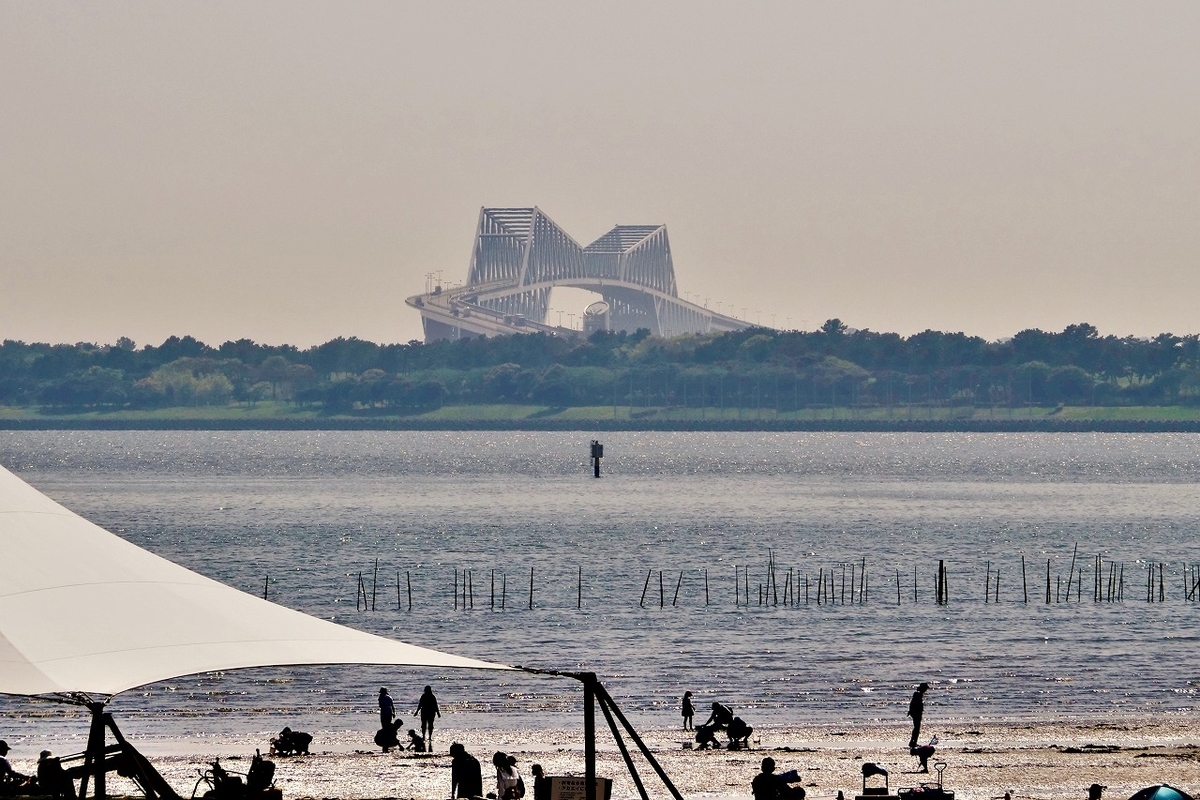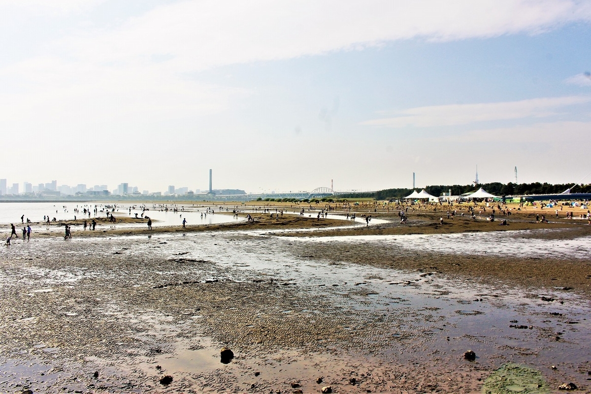海浜公園の西なぎさにはたくさんのテントが張られていた。干潮時の干潟では、子供たちと貝ほりなどで盛り上がっていて楽しそうだった。