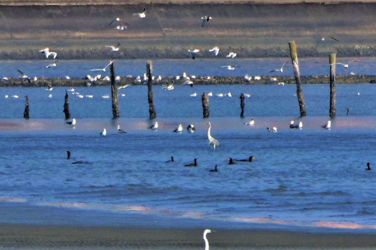 隣の東なぎさ鳥獣保護区の干潟には数えきれないほどの水鳥たちが群がっていた。人も水鳥たちも現れた干潟に夢中になっているようだった。