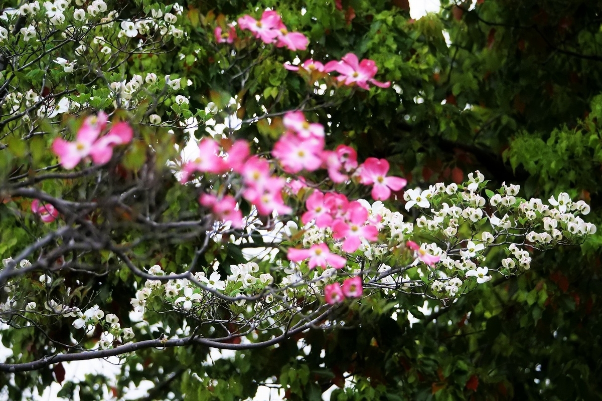 4月も中旬を過ぎて水元公園は春爛漫だった。タンポポの種が目の前に漂っていて気持ちを盛り上げてくれた。ハナミズキの木には薄紅と白の花が満開できれい、、、広い公園の水辺と中央付近のせせらぎを散策した。