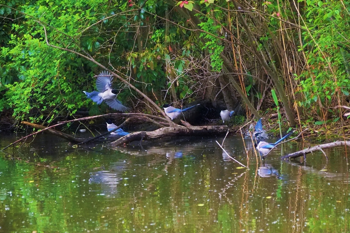 バードサンクチュアリには水浴びをするオナガの群れがいた、、、青い鳥が見れたのでいいことあるかもと思った。
