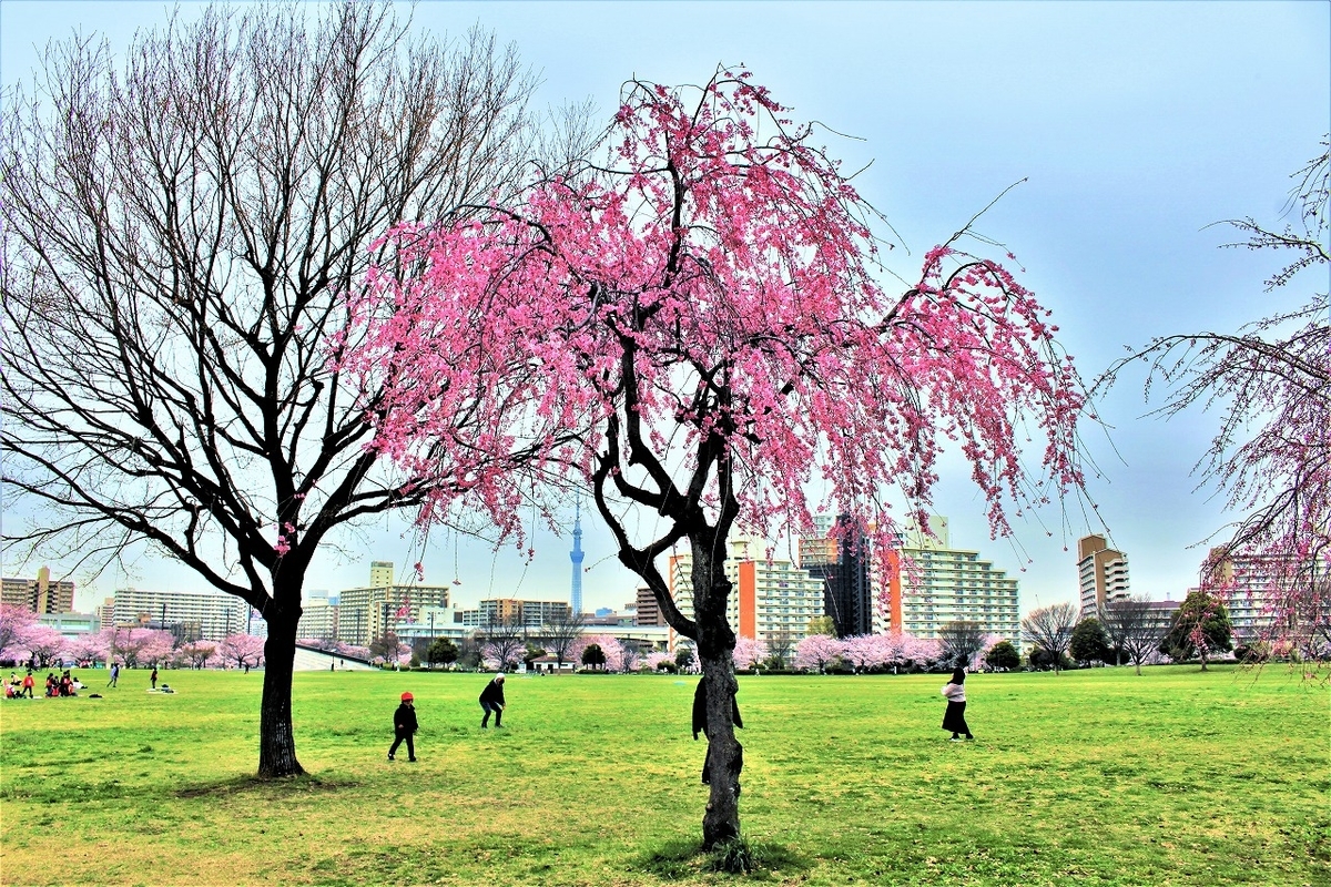 大島小松川公園のバーベキュー場で昼食をとった。周りの桜の木が満開で今にも散り始めそうな雰囲気だった。こんな広い公園でお花見をするのは何年ぶりだろう、、、子供たちの遊ぶ声も雰囲気を盛り上げてくれた。