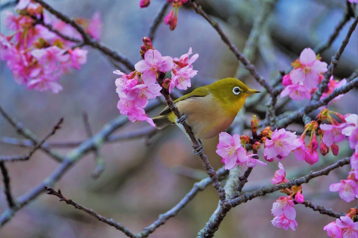 桜の花が揺れているのでよく見るとメジロがいた。桜が好きなのかなと思ったが、、、きっと梅の花に飽きたのでは、などとたわいもない事を考えていた。