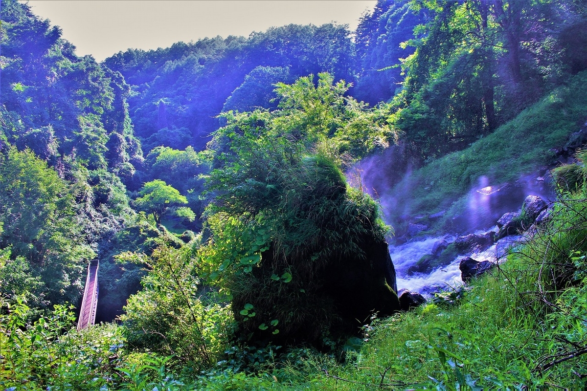 蓼科高原横谷峡遊歩道を散策した。渋川沿いの峡谷は、勢いよく流れ落ちる水のせいかとても涼しく感じた。