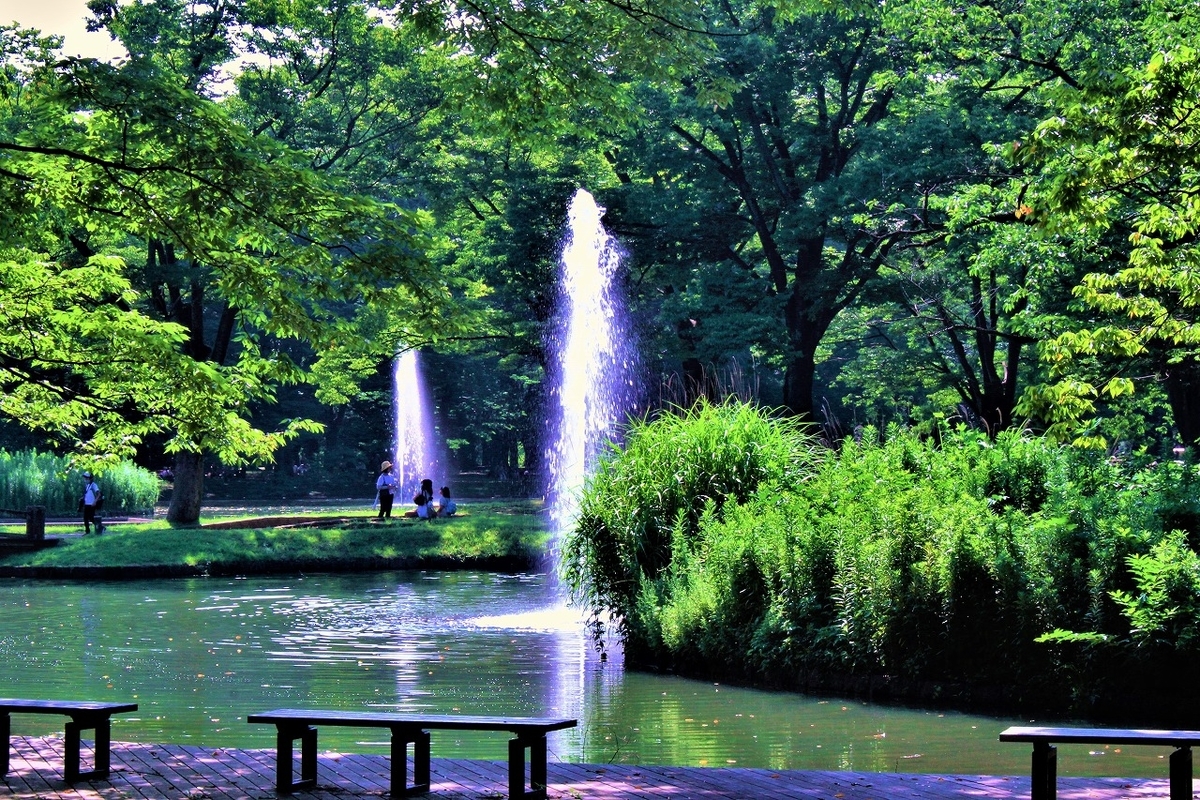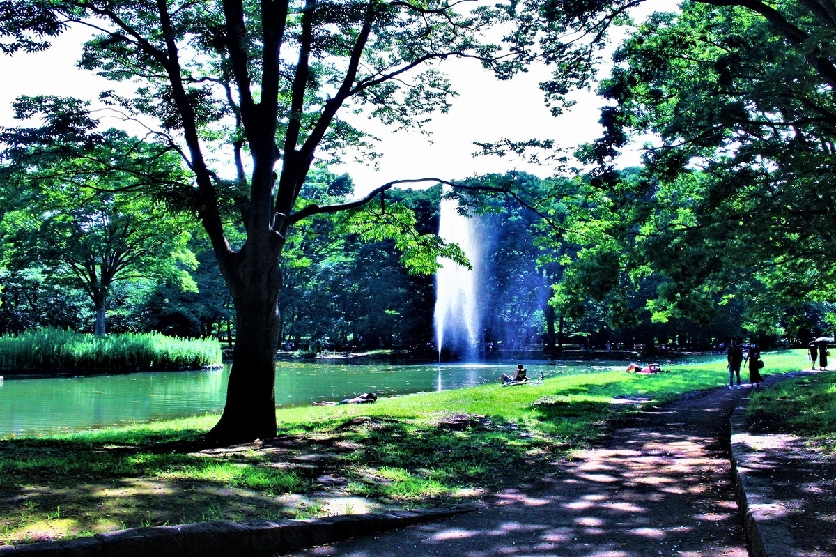 噴水のある池が見えてきた。強い日差しにキラキラと輝く噴水がきれいで涼し気に感じた。日光浴や家族でピクニックなど楽しむ姿は見ているだけで心が和んでいた。